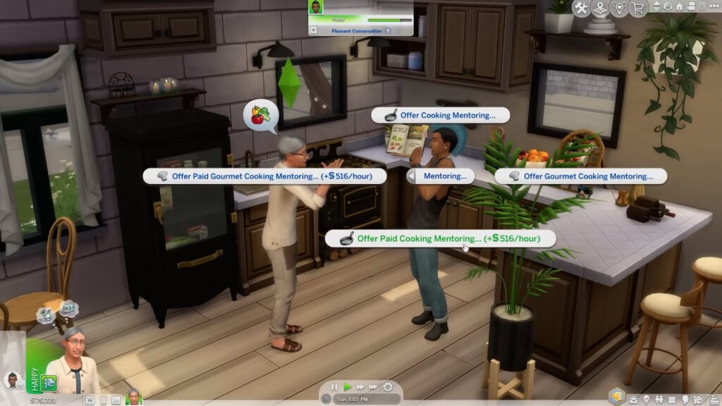 导师是掌握不同技能并拥有传递知识的能力到其他人身上。这可以付费或免费提供。这将使目标模拟市民的技能得到提升——比他们自己阅读技能书或使用与技能相关的物品更有效。技能掌握津贴是一个新系统,允许模拟人生解锁新能力。掌握技能津贴是通过持续使用与技能相关的互动来获得的,年长的模拟人生可以使用新的“赐予”互动将这些技能传递给其他模拟人生。