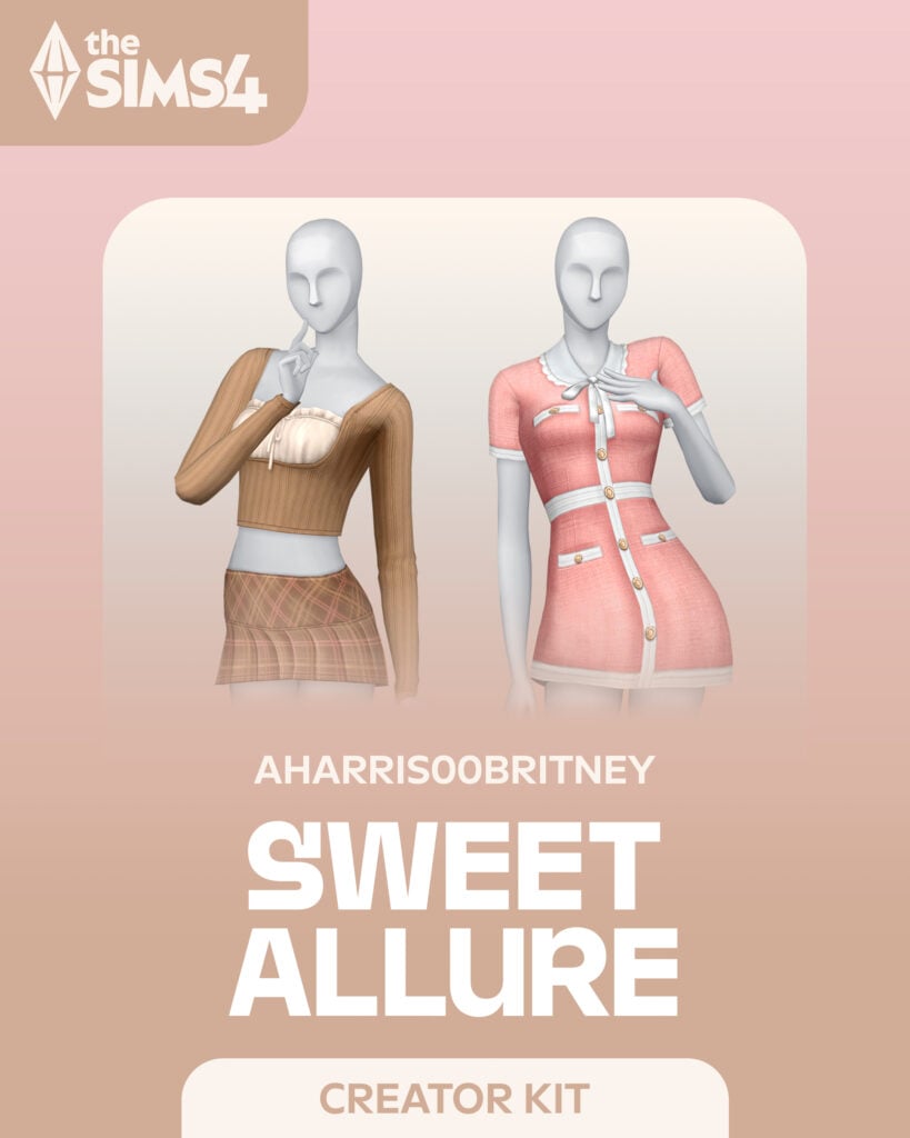 使用 The Sims 4 Sweet Allure 套件,为模拟市民的衣橱添加柔和的色彩和饰有丝带和蝴蝶结的服装。该套件中的服装和配饰以浅色为主色调,服装上饰有荷叶边和褶边,在日常造型中散发出优雅的气息。表达模拟人生时尚感更精致的一面,毫不费力地给你的模拟人生一种休闲风骚的时尚感觉。由 aharris00britney 创建。