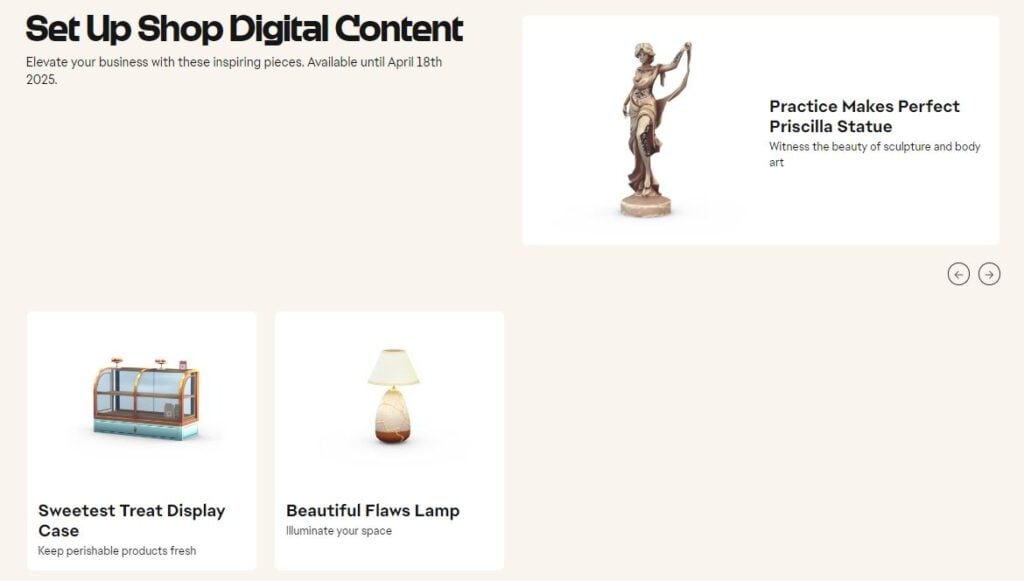 Mersea 和 Scott 还展示了一些新的数字内容,如果您在 4 月 16 日之前购买《The Sims 4》商业和爱好扩展包,即可获得这些内容。该套装包括一座新雕像、一个可用于出售工艺品的展示架和一盏金继风格的灯。