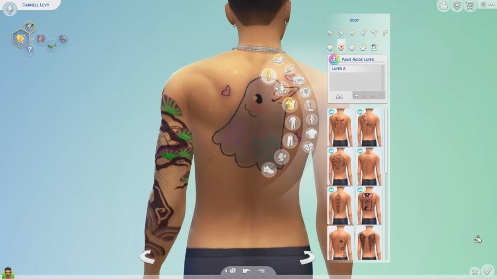 在最近的更新中,所有玩家都可以按位置对纹身进行排序,而“业务和爱好”则更进一步,允许您将纹身一层一层地叠加。新纹身的灵感来自各种背景,包括爱尔兰和苏格兰的凯尔特文化。模板工具可以让您在模拟市民上绘制纹身时获得指导,或者您也可以使用手绘工具单独进行,让您可以从一系列画笔和颜色中进行选择。 Mersea 提到了抢先体验的玩家如何使用该工具为他们的模拟人生添加自定义胎记和美丽标记。