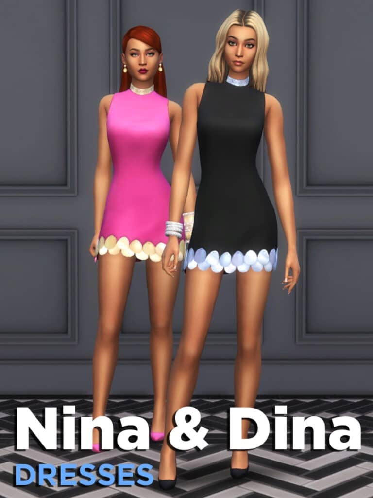 每件连衣裙和连身裤均以《模拟人生 4》中的一位标志性家庭主妇命名,其中包括 Del Sol Valley 的 Judith Ward、Oasis Springs 的 Nancy Landgraab、Nina 和 Dina Caliente、Willow Creek 的 Bella Goth 以及 San Myshuno 的 Anaya Jang。