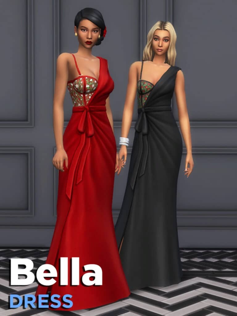 这件衣服以贝拉·戈特 (Bella Goth) 的名字命名。这是一款不对称的垂褶连衣裙。下面是带有花卉图案的蕾丝紧身胸衣。