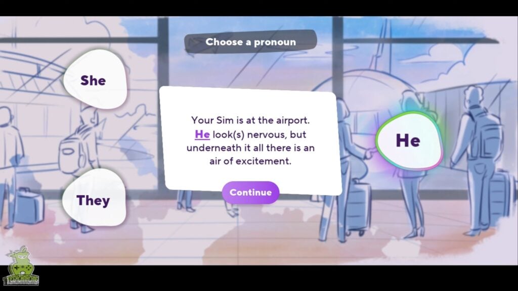 Sims Project Rene 智能手机游戏测试称为“与朋友的城市生活游戏”,当您第一次打开游戏时,它有一个独特的预设故事创建器。这使您可以选择模拟市民喜欢的代词、体型、服装和个性。