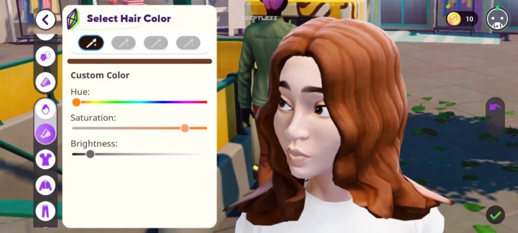 如果您有兴趣更深入地定制模拟市民的发型,您绝对可以在详细模式下进行。包括发型 4 个不同部分的色调、饱和度和亮度。