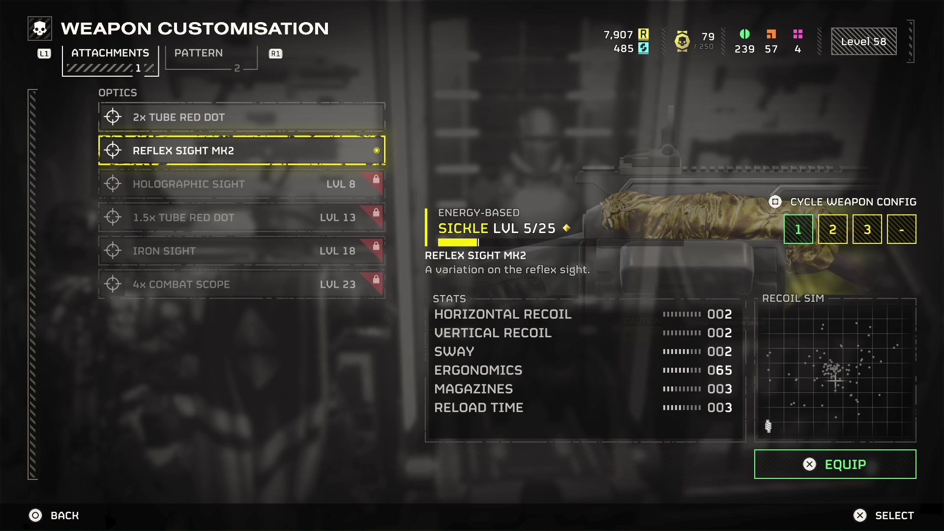- 在这里,您可以使用申请单购买新附件,前提是您已达到解锁它们的武器级别。