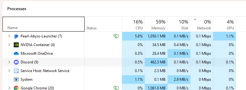 - 后台应用程序:玩《Valorant》时,请确保没有后台应用程序占用您电脑上的资源。要检查后台应用程序,请按“Ctrl + Shift + Esc”打开任务管理器,然后按“网络”排序。检查哪些进程正在使用您的互联网速度,并关闭所有不需要的应用程序。
