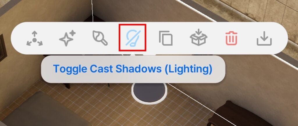 – 如何应用:默认情况下,此设置处于禁用状态。您可以通过在构建模式中选择所需的吸顶灯或落地灯来单独激活阴影