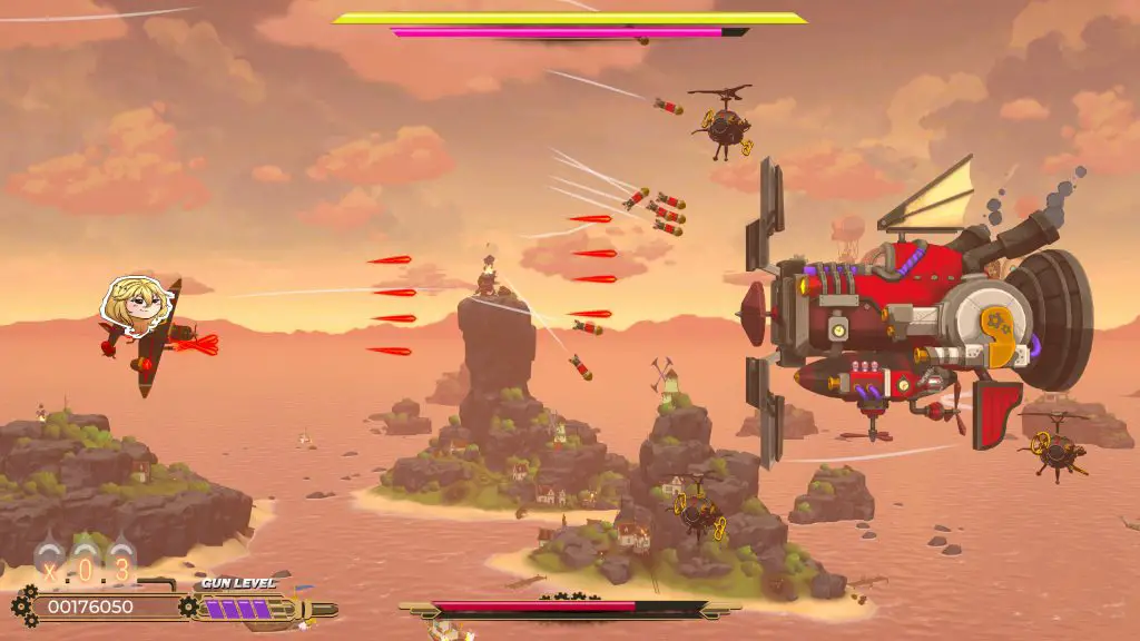消灭敌人可以为您提供能量提升或能力。强化道具可以用强大的射击模式升级你的武器库,而能力则可以触发诸如散布射击或爆炸之类的事件,从而消灭屏幕上的敌人。丰富多彩的角色和动作的对比为玩家创造了良好的体验,平衡了紧张的时刻,同时避免了伤害。也有一些时刻,任务会让你保卫一个村庄,抵御一波又一波的强大敌人,破坏Shmup行动。每个关卡都以一次 Boss 遭遇结束,这再次让我惊讶于我所获得的乐趣。
