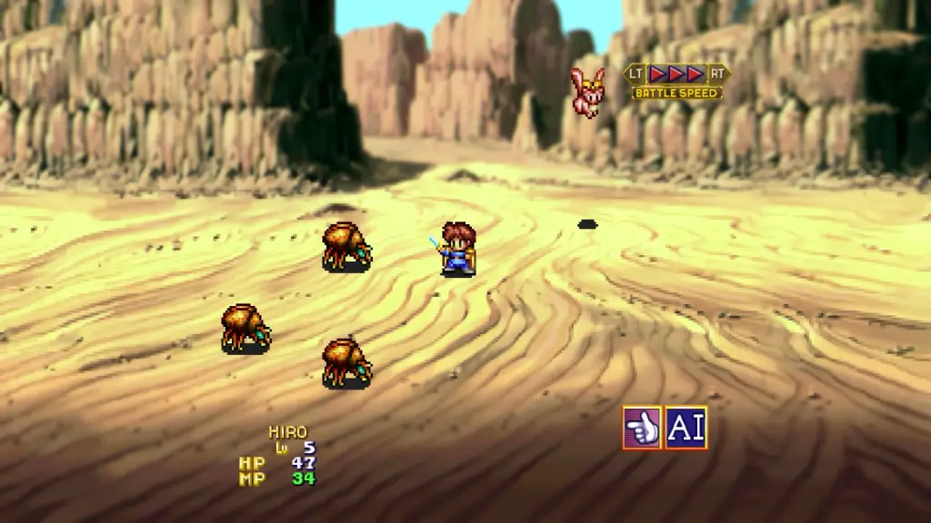 尽管如此,地下城和城镇都包含可以免费治愈你的女神雕像。另外,战斗遭遇完全基于符号,因此您不必担心随机发生的情况。就我个人而言,《Lunar》的游戏进程是一种令人耳目一新的新奇,因为它非常简单。只是需要担心磨练经验,无论如何,这从来没有花那么长时间,让我感觉自己正在拥抱这种类型的核心,没有任何附加条件。没有困难选项有助于这种心态,尽管没有必要担心战斗是轻率的。 Boss 确实具有挑战性,需要仔细管理 MP 和物品才能获胜。