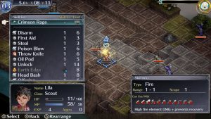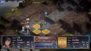 战斗发生在具有高度差异的四分之一视图地图上,因此战略定位至关重要。玩家可以利用地形优势或包抄敌人来取得上风。