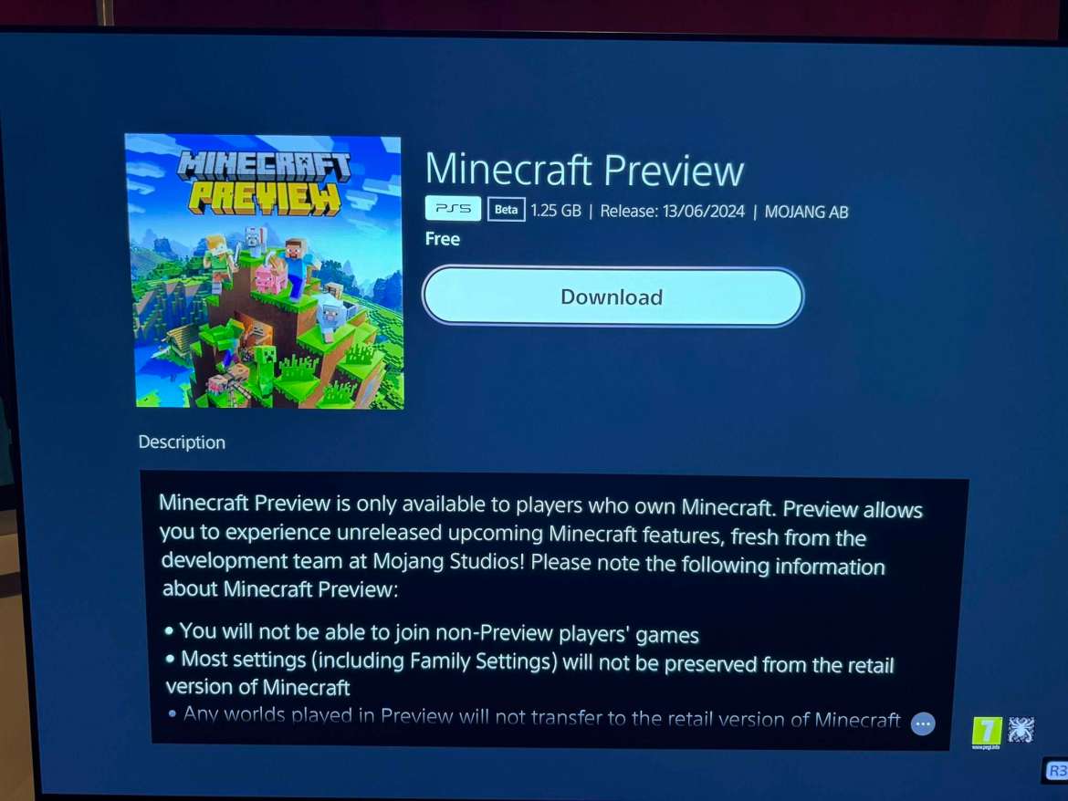 如上面的屏幕截图所示,玩家需要访问 PS4 版 Minecraft 中的设置菜单,然后前往预览部分。在那里,他们现在将看到获取 PS4 和 PS5 游戏预览版本的选项。选择 PS5 预览版本会将他们带到 PlayStation Store,在那里他们将能够兑换 PS5 版本,如下面的屏幕截图所示。