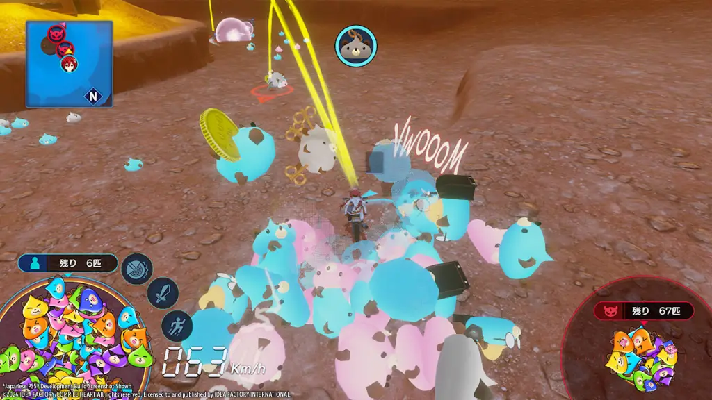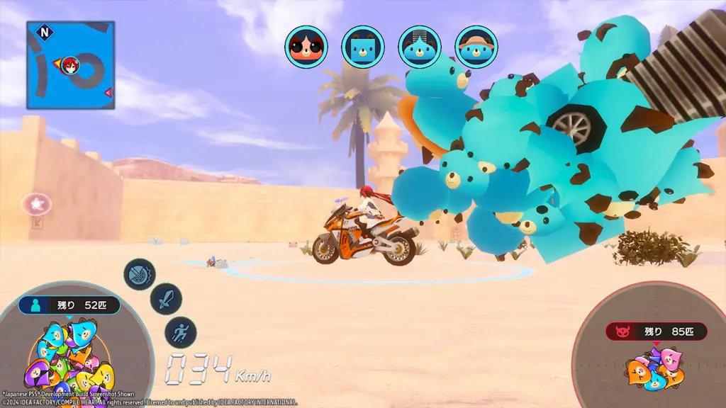 Neptunia Riders VS Dogoos 有 6 个可玩角色,鼓励玩家在 15 个充满 Dogoo 的关卡中收集尽可能多的 Dogoos 变体。有些角色擅长近距离战斗,而另一些角色则擅长远程战斗。