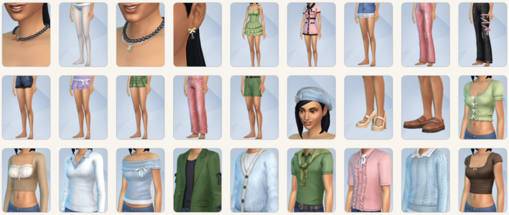 - 温柔甜美的优雅——无论是参加正式活动、在花园里散步,还是简单的早午餐,都可以用珍珠项链、柔软的毛衣和精致可爱的裙子来装饰你的模拟人生,让他们实现风骚的时尚幻想。