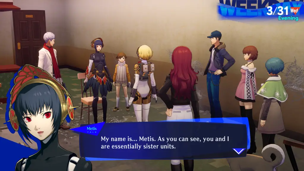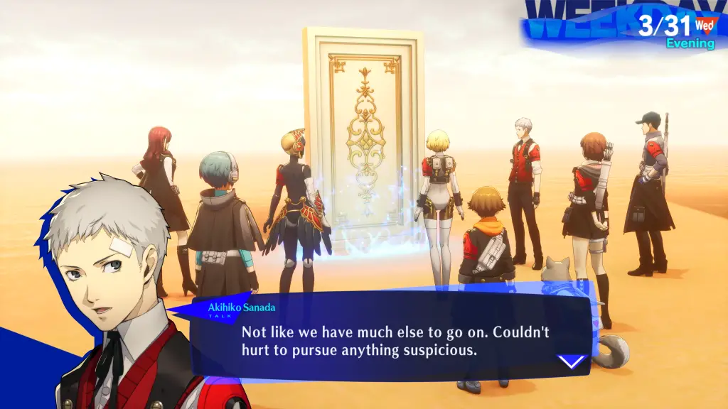 在《女神异闻录 3:重装上阵》中发生的《旅程》事件之后,没有主角的演员们发现自己处于土拨鼠之日的场景中,并且会重复出现 3 月 31 日。