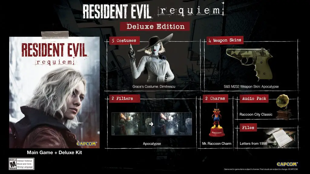 所有预订均包括格蕾丝的天启服装。除了标准版之外,豪华版还将包含五件奖励服装、四种武器皮肤、两个屏幕滤镜、两个武器饰物等等。