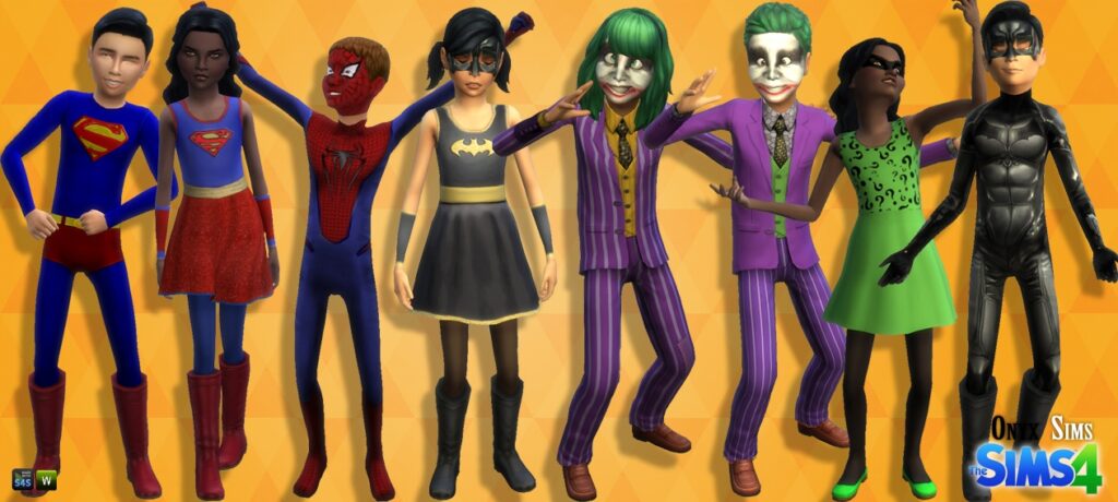 对于喜爱超级英雄(或超级恶棍)的学龄儿童来说,他们一定会喜欢这款《模拟人生 4》万圣节服装 CC 套装。从超人和女超人到小丑和谜语人,您的孩子会感觉自己足够强大,可以在这个恐怖的日子里应对任何事情!甚至自己拎一整枕套糖果回家!