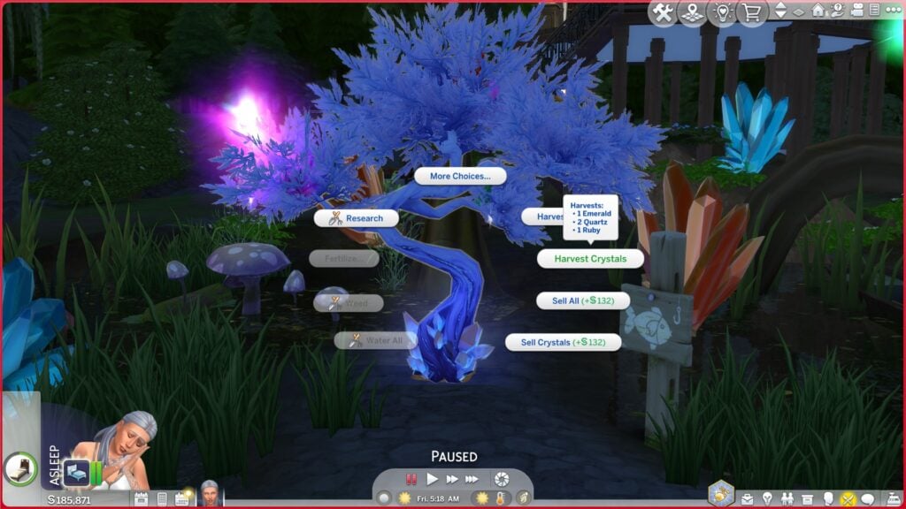 这棵水晶树不仅华丽,而且对收藏家和珠宝工匠来说非常有价值,因为正如您可能已经猜到的那样,您每天都可以从中收获水晶。每天早上 5 点,当植物重生其收获物时,水晶树会随机产生各种各样的水晶供您的模拟人生收集。您永远不知道那天您会得到哪些水晶,但它们的范围从常见到稀有。如果您想确保更频繁地获得更稀有的水晶,请专注于照顾您的水晶树,以便将其发展到最高质量。完美品质的水晶树可以产出更稀有的水晶。