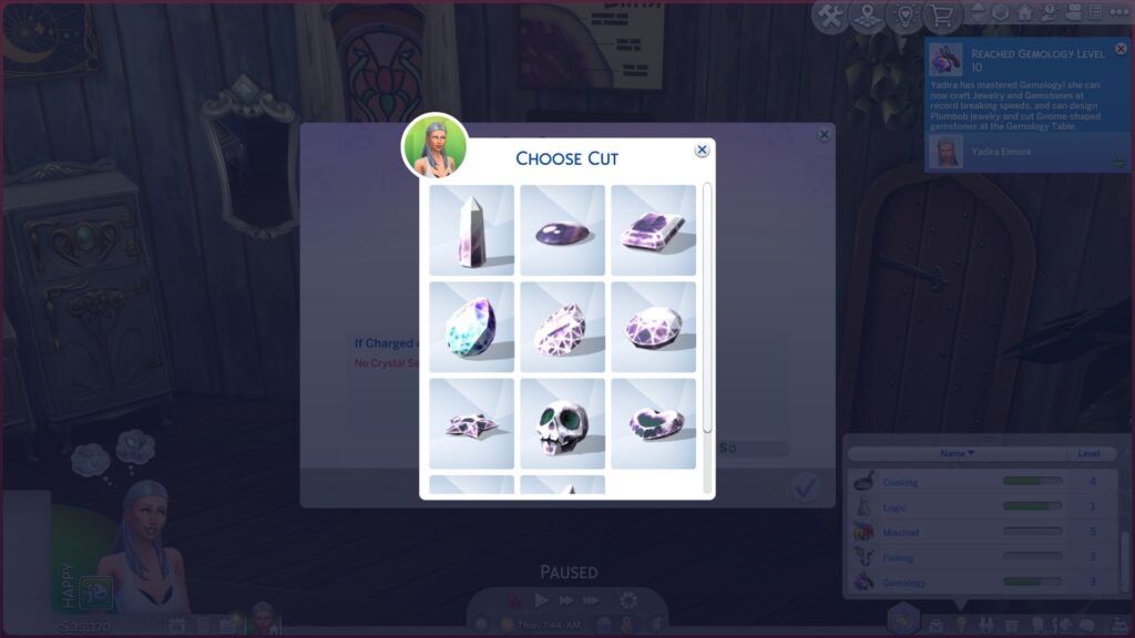 《模拟人生 3》中备受喜爱的功能回归《模拟人生 4》水晶创作以璀璨宝石的形式!模拟人生可以再次将他们发现的水晶切割成各种华丽的宝石形状,从心形到头骨到铅锤,甚至水晶侏儒!