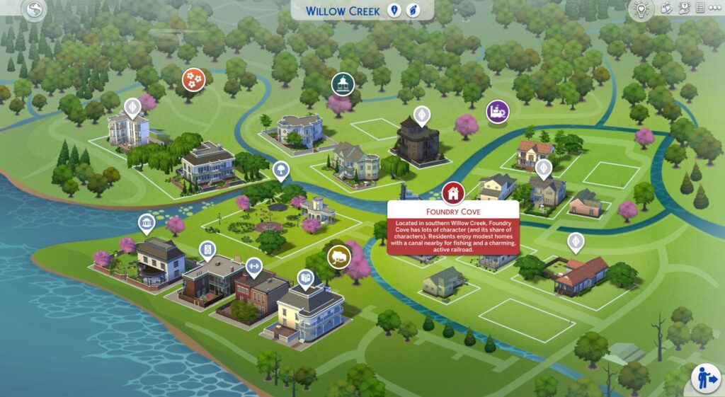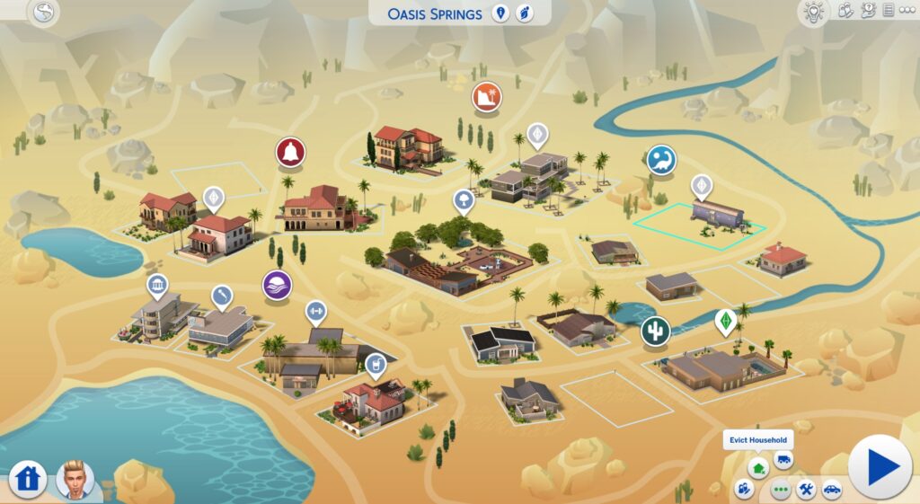 在任何住宅世界地图中,单击模拟市民的大图标和箭头即可进入 CAS 并创建一个新家庭并搬入这个世界。