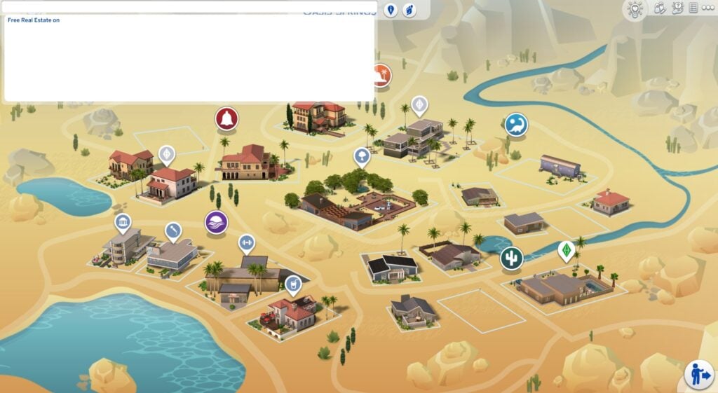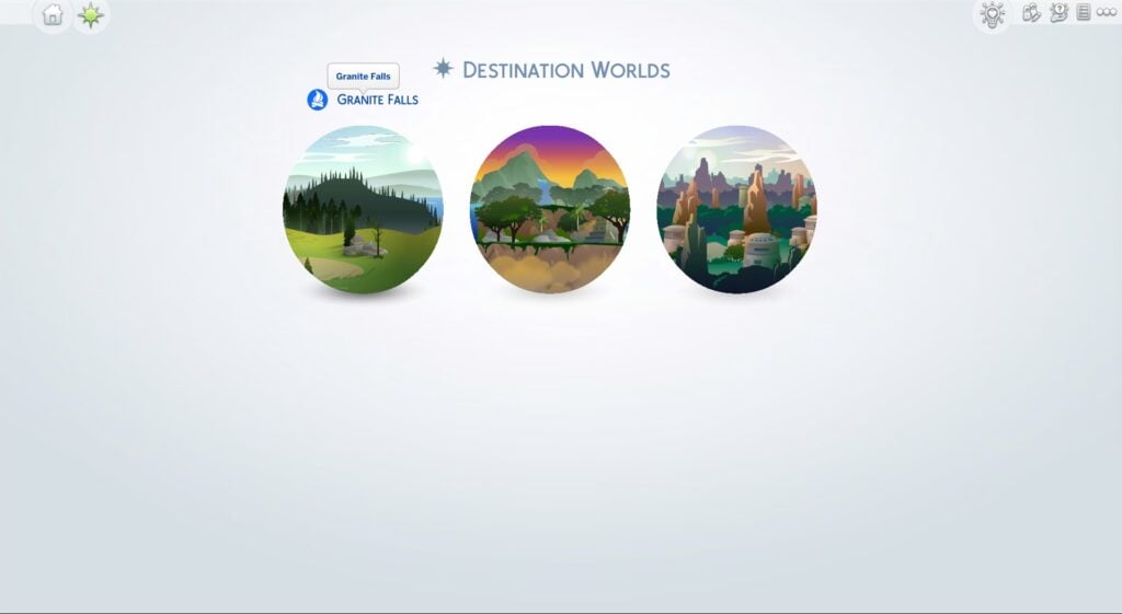 您可以通过单击主世界选择屏幕上主页图标旁边的罗盘针图标来查看目的地世界地图。你无法将模拟市民移动到目的地世界,但你可以在其中进行建造。