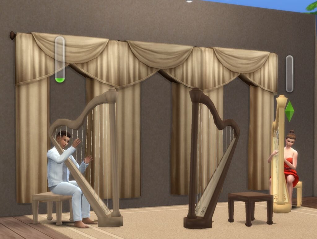 你问新技能吗?是的,西姆斯可以通过弹奏竖琴来建立新的竖琴技能。该技能有 10 个级别,每个级别都会解锁与弹奏竖琴相关的新社交互动,以及可以在竖琴上演奏的新型音乐。高技能的竖琴玩家可以创作自己的歌曲并像游戏中的其他乐器一样获得许可!