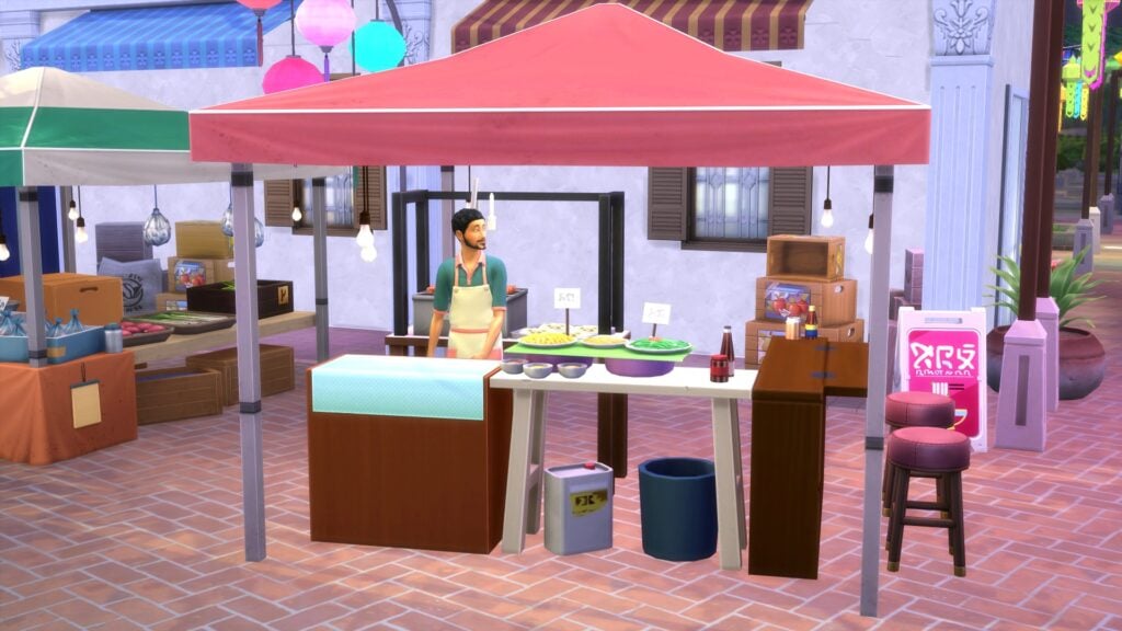 如果您没有机会从市场上烹制一些鱼作为晚餐,并且又想吃一顿大餐,那么 Sims 4 夜市中的小吃摊就是您想去的地方。这个摊位位于主要摊位的尽头,您的模拟市民可以在这里享用一顿丰盛的大餐。