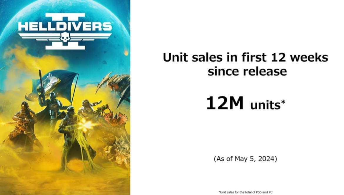 其期间财报电话会议(通过在 2023 财年会议上,索尼集团宣布,预计到 2024 财年末 PS5 出货量将达到 1800 万台,使游戏机总出货量达到 7700 万台。另据透露,截至 2024 年 5 月 5 日,《地狱潜伏者 2》的销量已超过 1200 万份,打破了《战神诸神黄昏》此前保持的销售记录。