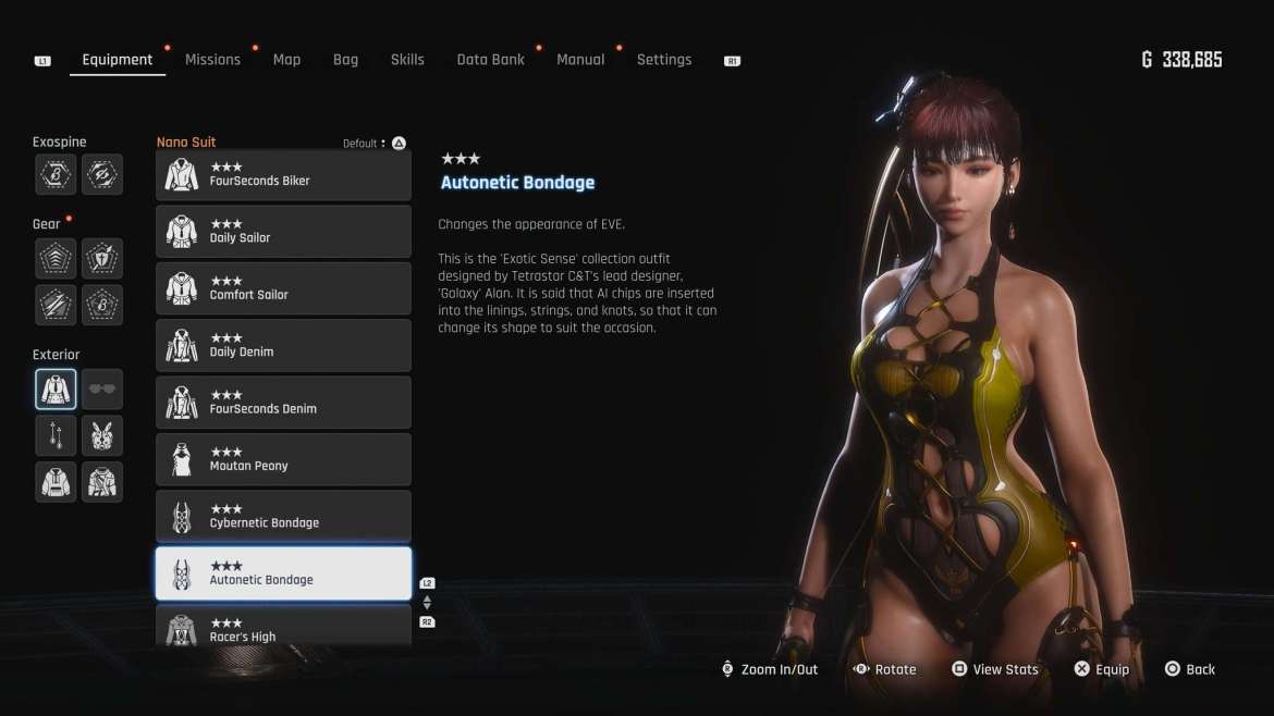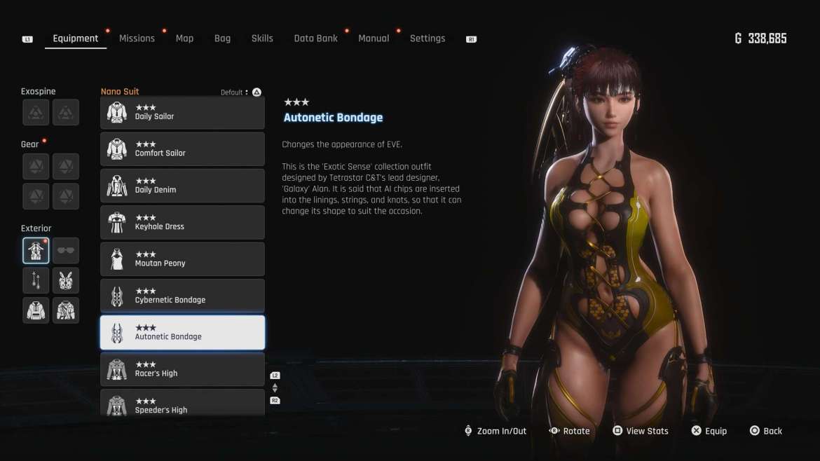 Twitter/X 用户挖掘机_分享了一个简单但令人着迷的解决方法,让 Stellar Blade 玩家可以使用未经审查的 New Game+ 套装,包括自动束缚套装。如果您也想这样做,请继续阅读。