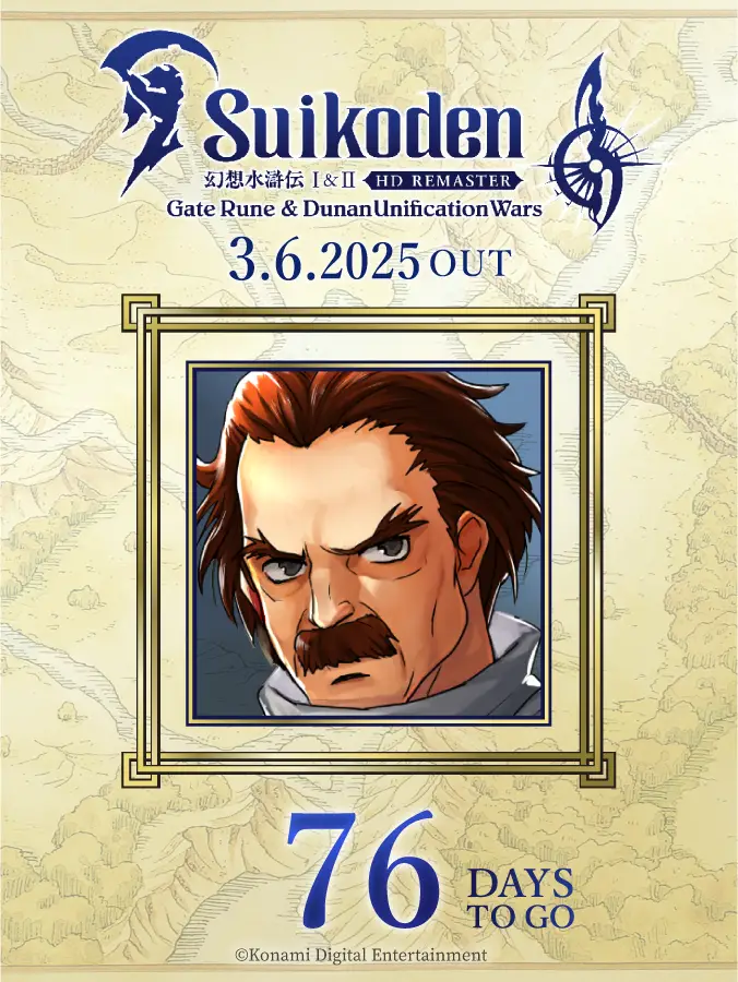 Konami 继续为即将推出的水浒传 I&II 高清重制版《门符文》和《盾南统一战争》进行 108 天倒计时系列。每天,游戏官方社交媒体帐户都会在专门的帖子中突出显示双重冒险中的角色。