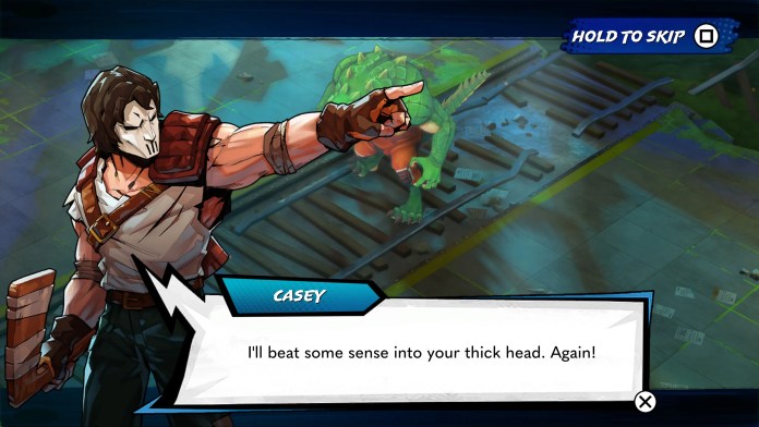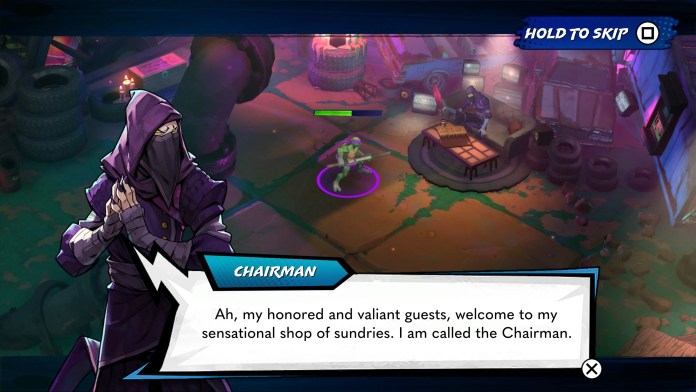 尽管故事很简单,但叙述却相当引人注目。海龟们必须齐心协力对抗碎纸机的故事并不是特别新鲜,但《分裂命运》引入的额外层次足以让你在整个游戏过程中着迷。就其本质而言,Roguelite 游戏就是为了不断重玩而设计的。虽然死亡是一种惩罚,但它是让故事继续下去的必要拼图。每次我被送回海龟总部时,我总是喜欢花一点时间与游戏中的配角交谈。