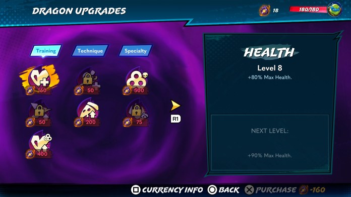跑步结束后,您还必须选择要购买的永久升级。其中最重要的是可以提高你的生命值、攻击力,甚至在你死后提供免费的复活。这些升级非常有用,尤其是对抗更难的 Boss,但《分裂命运》的亮点在于,你可以随心所欲地选择升级,并选择你想要采用的游戏风格。