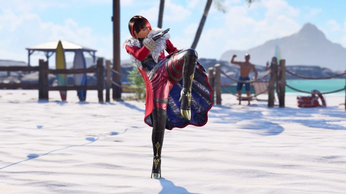 当然,这是她的默认1套服装,这是标准的。她的默认 2 套装是相同的服装,但蓝色取代了服装 1 的红色,包括她的头发。然而,她的默认 3 服装是配备枪的白色和黑色士兵外观服装。它看起来像是某种吸血鬼杀手的服装,我真的很喜欢它。最后,她的默认 4 套装是她的《铁拳 7》默认服装,所以我猜这里有一套适合她的传统服装。