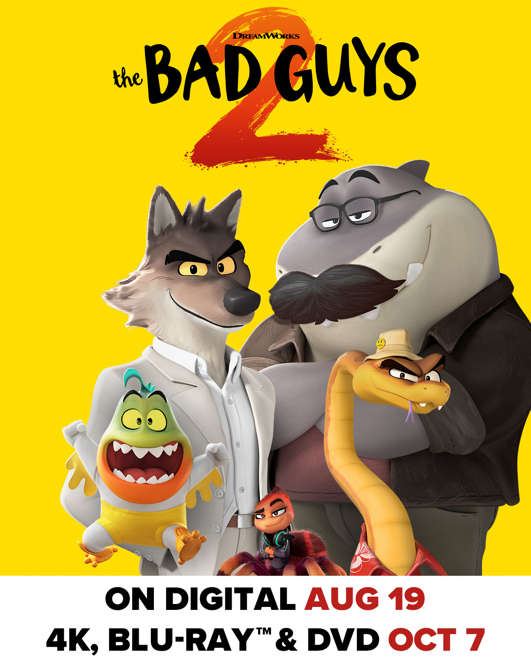 梦工厂动画公司正式宣布了《坏人 2》的在家上映计划,这标志着该工作室从影院向数字平台转型最快的影片之一。这部动画抢劫喜剧将于 8 月 19 日开始在 PVOD 和流媒体上播放,距离影院首映仅两周多一点。蓝光、4K UHD 和 DVD 将于 10 月 7 日发行。