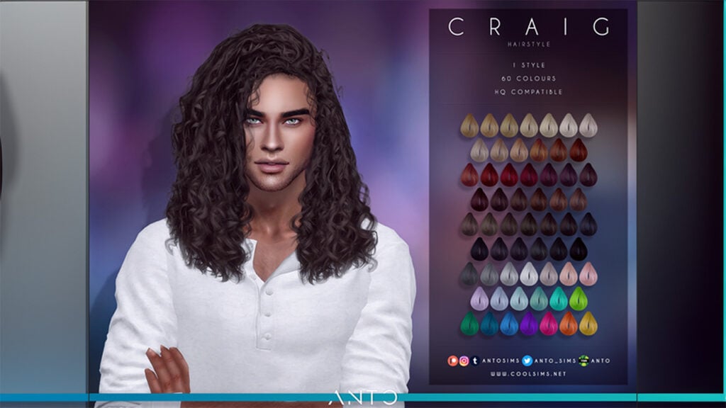 伙计们,这个是给你的!克雷格发型是对 Alpha CC Sims 4 社区中男性模拟人生更多卷发选择的众多要求的回应。正如 Anto 一贯的风格一样,这不仅仅是一种普通的发型;这是一篇声明文章,上面写着:“嘿,男人们也可以摇滚卷发!”。