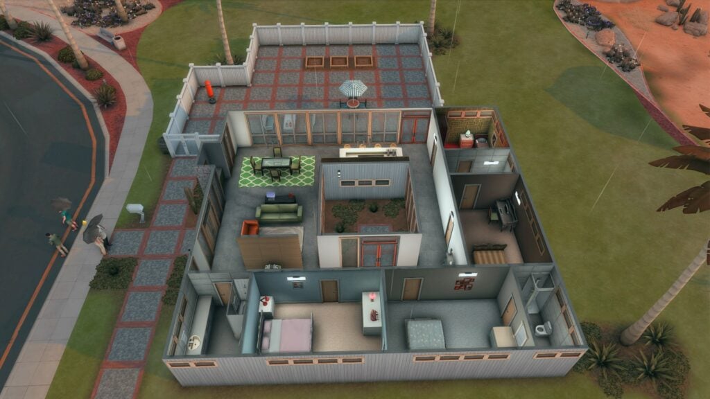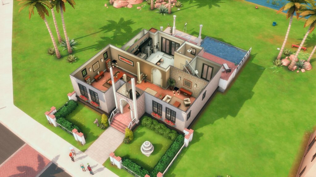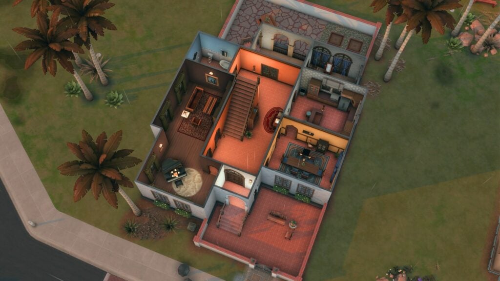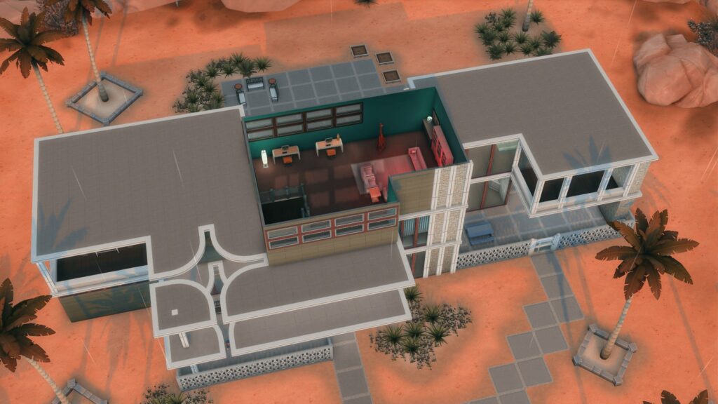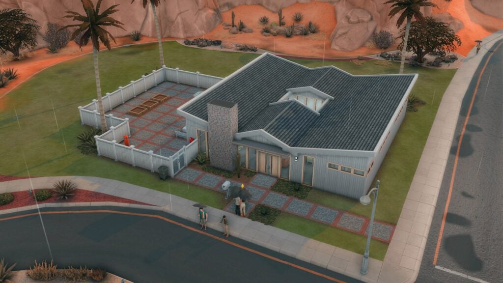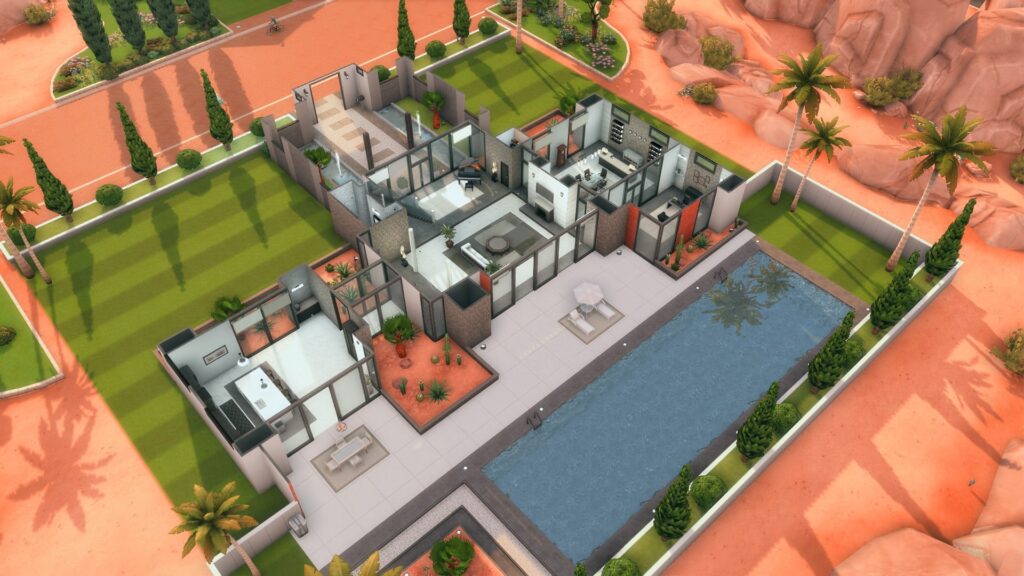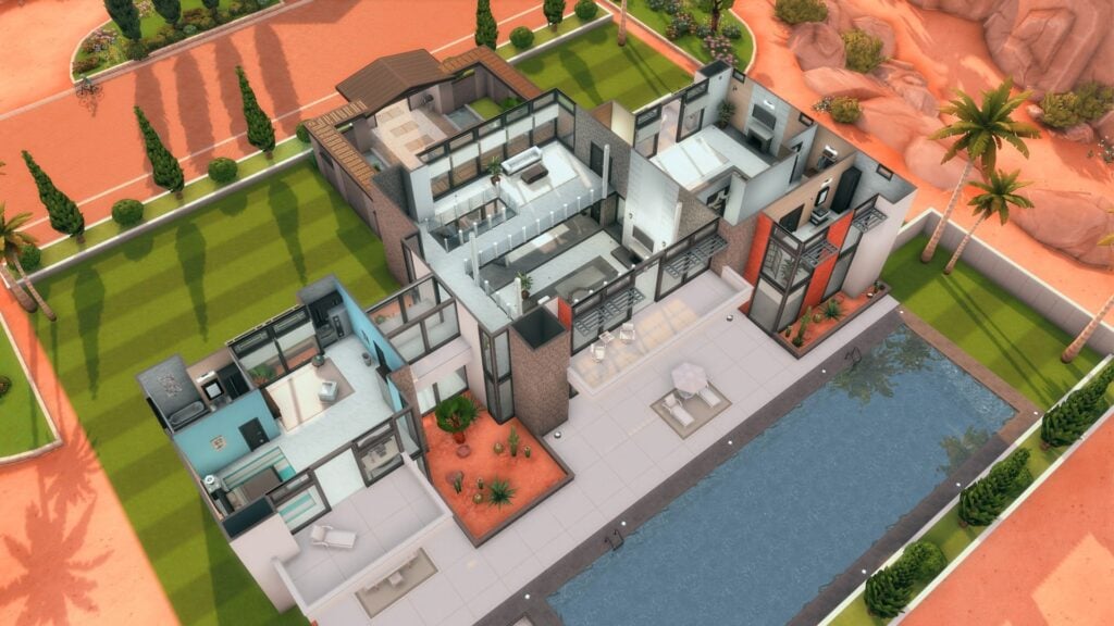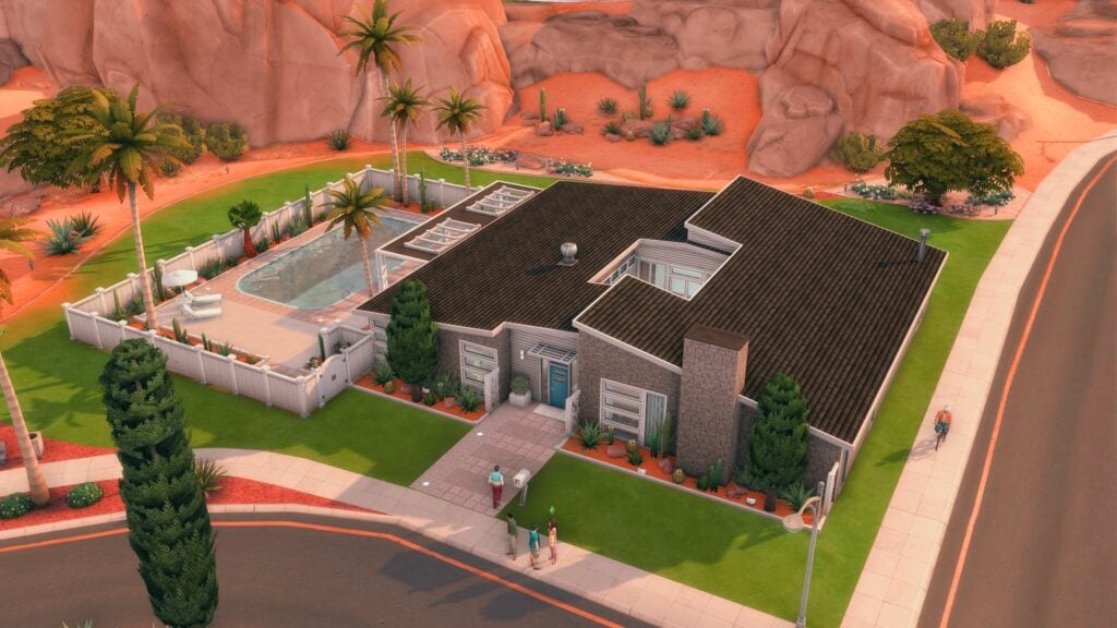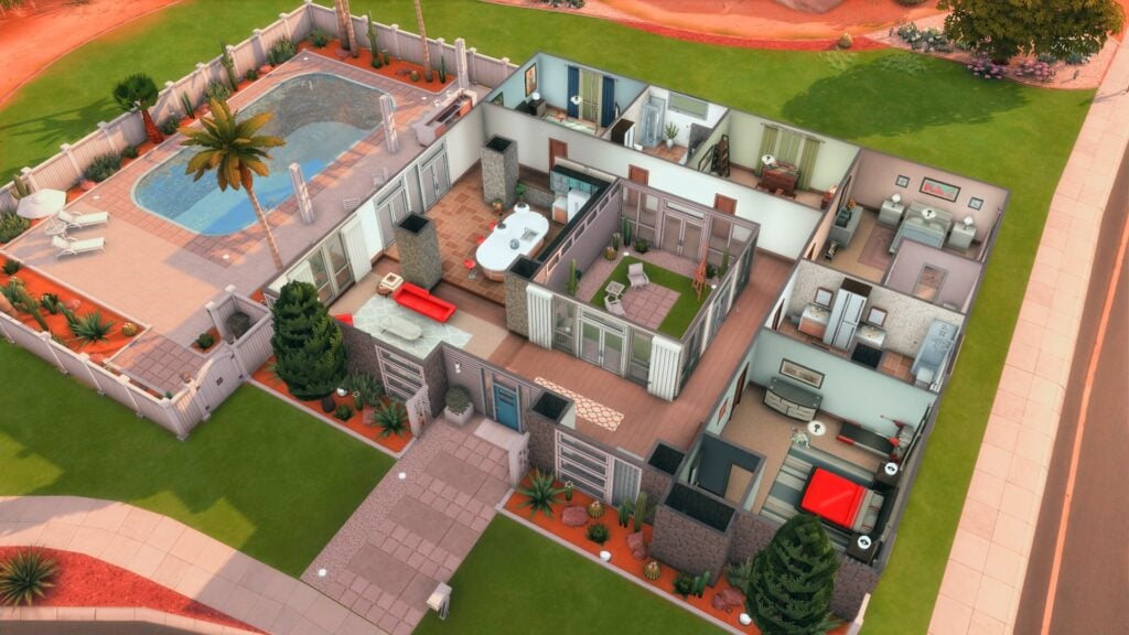 在最新的 Sims 4 Base Game House Refresh 中,这个家从极客变成了时尚,进行了中世纪的改造,看起来好多了!后院现在有一个带休息区的大游泳池和一些沙漠树叶来完善外观。