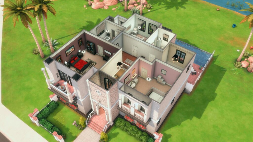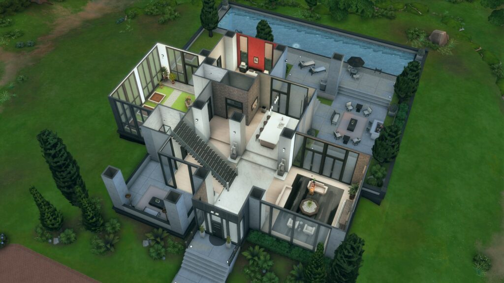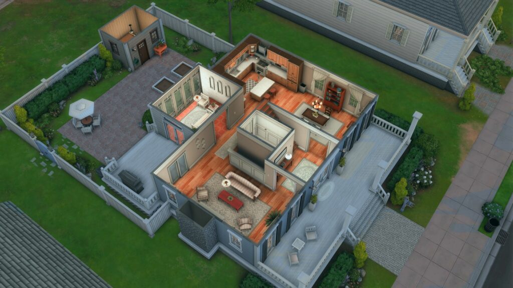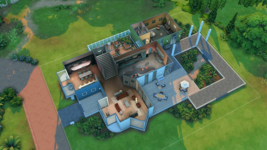 在《模拟人生 4》基地游戏房屋更新中,模拟人生团队全力以赴打造豪宅,兰德格拉布的改造现在也适合他们的房子!景观完美地组合在一起,与新的建筑和配色方案相得益彰。