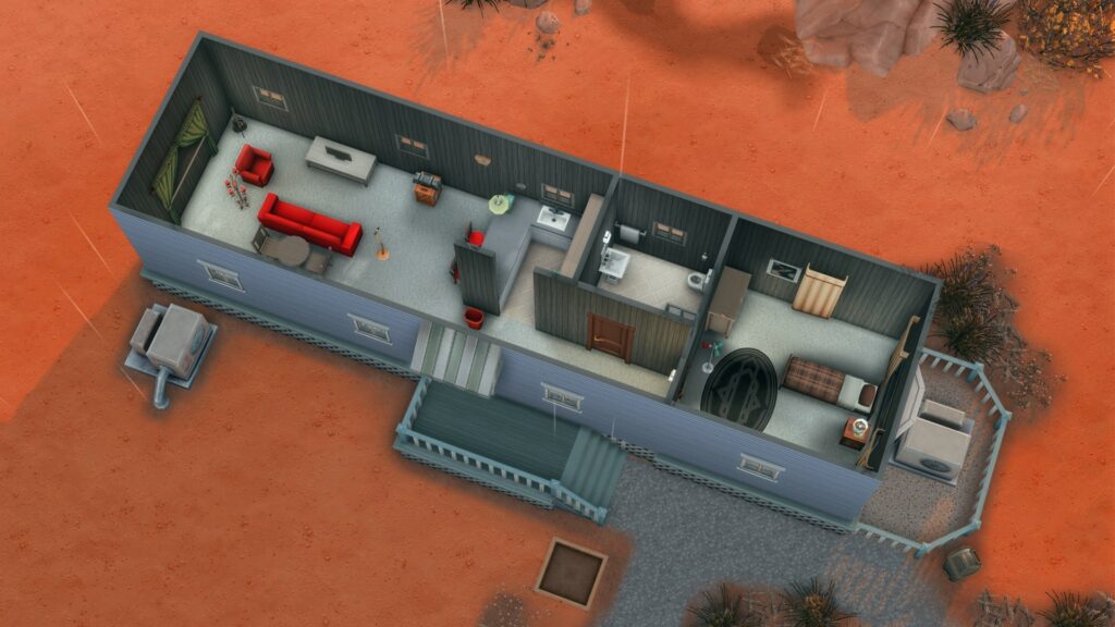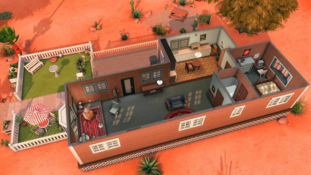约翰尼的拖车进行了甜蜜的改造,仍然保留了原版的精髓,同时添加了更好的景观和新的油漆饰面。前院现在有一个可爱的入口花园(有点让人想起《模拟人生 2》的拖车屋?)