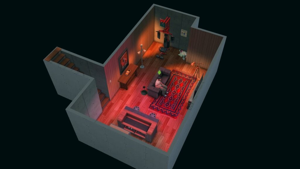 顶层的布局也发生了巨大的变化,明亮通风的走廊通向 3 间卧室,卧室已更新为新的家具和装饰。看起来唐现在和卡特里娜共用一间卧室——但从游戏玩法来看,这没有意义,因为他们在游戏中没有关系。哎呀。我想,唐得到了沙发。
