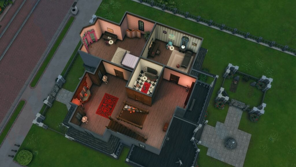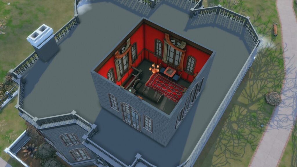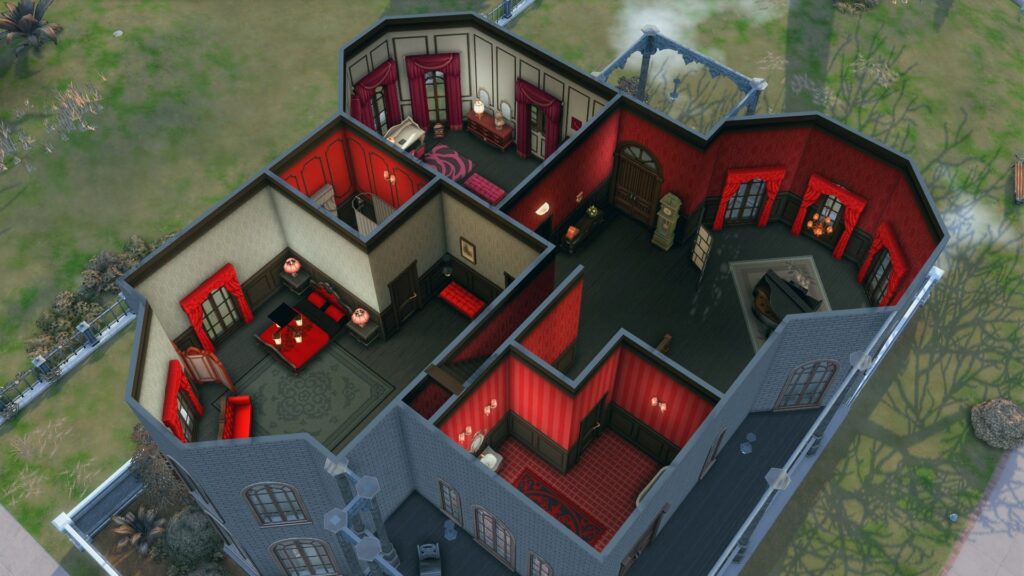 哥特之家在第一个《模拟人生 4》基础游戏房屋刷新中进行了重大建筑更新,移除了房屋顶部的房间并添加了更多屋顶设计。