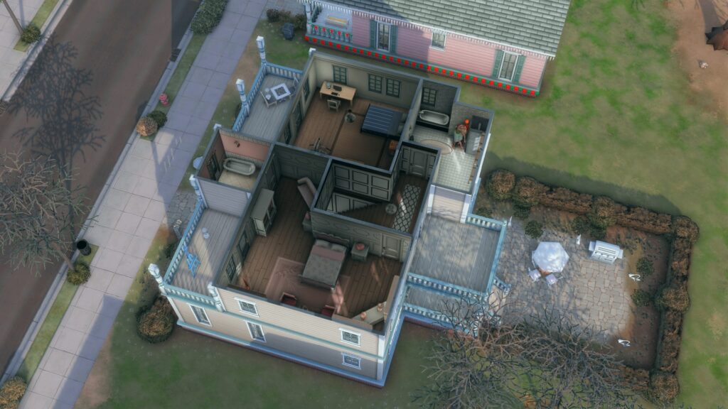 多亏了《模拟人生 4》基础游戏房屋更新,曾经是单调、过时的房子,现在变成了一个更加温馨、更加完善的家!院子里装饰着植物和树木,灰色的油漆工作和棕色的栅栏也被更明亮的调色板所取代。