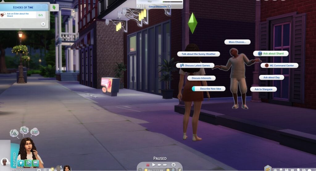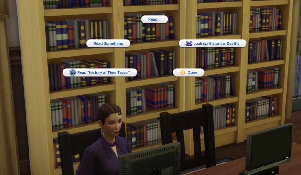 通过演奏《模拟人生档案》卷来体验过去。 2(+25事件点)- 图书馆的书有一些关于时间旅行和视频游戏的有趣理论。选择游戏游戏,然后玩《模拟人生档案》卷。 2在计算机上探索过去。