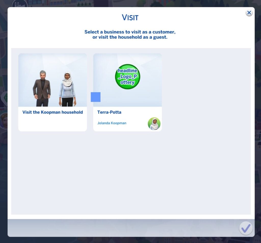 模拟人生创造者@Simmattically发布了世界地图视图中新访问屏幕的屏幕截图。让您选择是否愿意以客户或家庭客人的身份访问小型企业。
