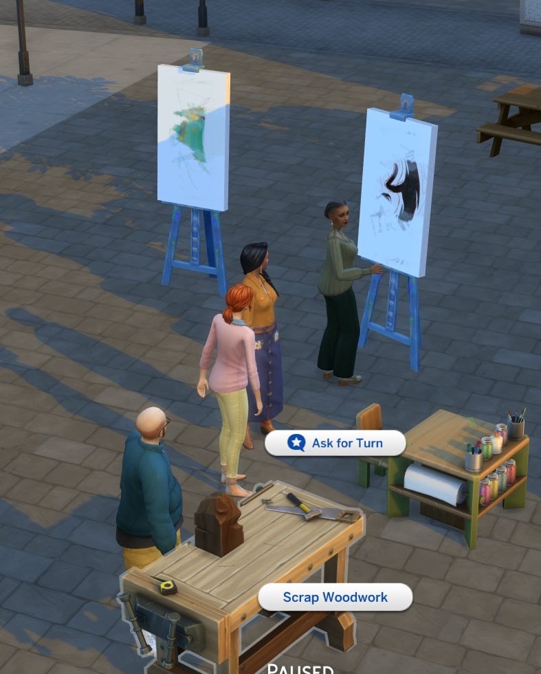 看起来模拟市民在使用《模拟人生 4》基础游戏中的木工台时将能够轮流使用。但没有有关游戏效果的更多信息。