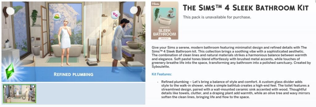 这款 Sims 4 Creator 套件由 Syboulette 创建,具有新的构建对象。完全专注于浴室目录集!查看官方功能和首屏:
