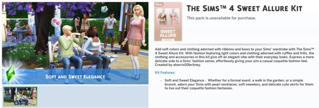 《模拟人生 4》创作者套件泄露的另一部分是新的 Sweet Allure 套件。由 aharris00britney 从头开始创建。查看完整的 CAS 功能、描述和图像: