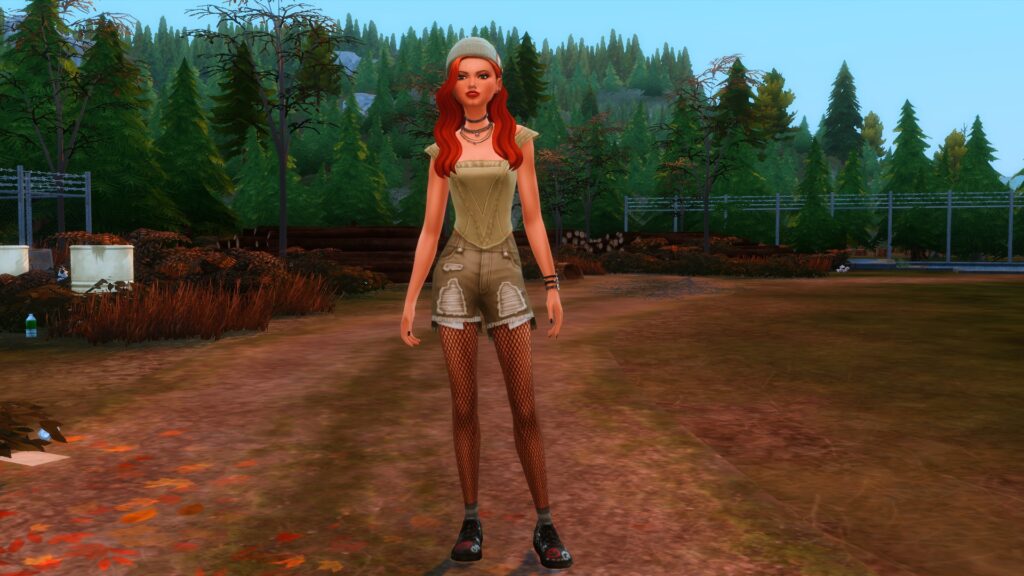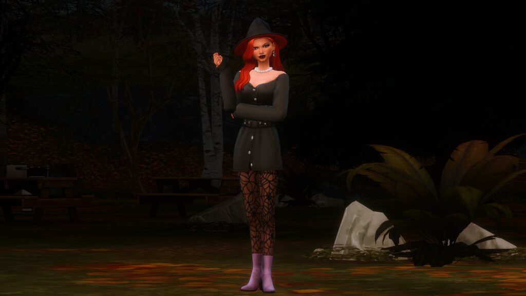 不去参加万圣节派对吗?只是和朋友在当地的俱乐部或酒吧吃饭?那么这款造型就适合您的模拟市民!虽然它可以在晚上晚些时候变成万圣节造型,但这更像是一套舒适而实用的服装,适合与朋友一起出去玩。帽子和头发的组合非常出色,与紧身胸衣搭配,外观将朋克摇滚氛围融为一体。
