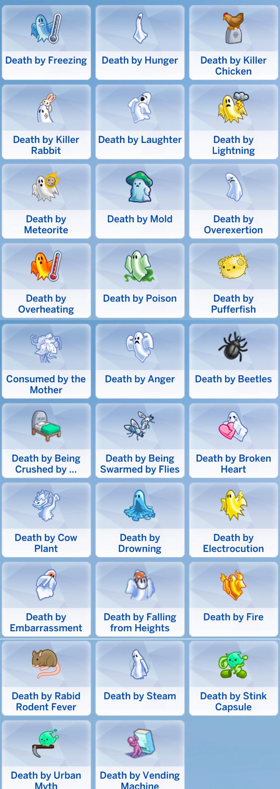 - 所有《模拟人生 4》幽灵和死亡类型(基础游戏和 DLC)