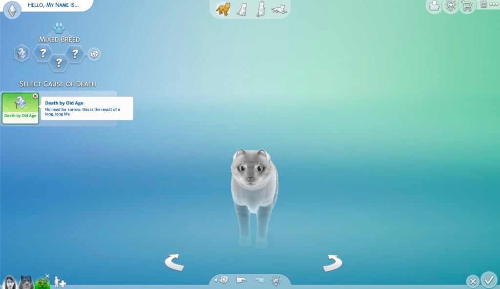 《模拟人生 4 幽灵》更新为《猫与狗》和《马场扩展包》的所有者添加了一些额外内容。如果您安装了这两个扩展包中的任何一个,您将能够立即从创建宠物中将幽灵形态应用于您的宠物。