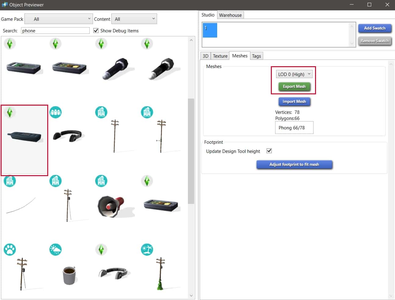 - 找到一个你想要变成姿势配件的物体。如果要使用调试对象,请选中“显示调试”框。