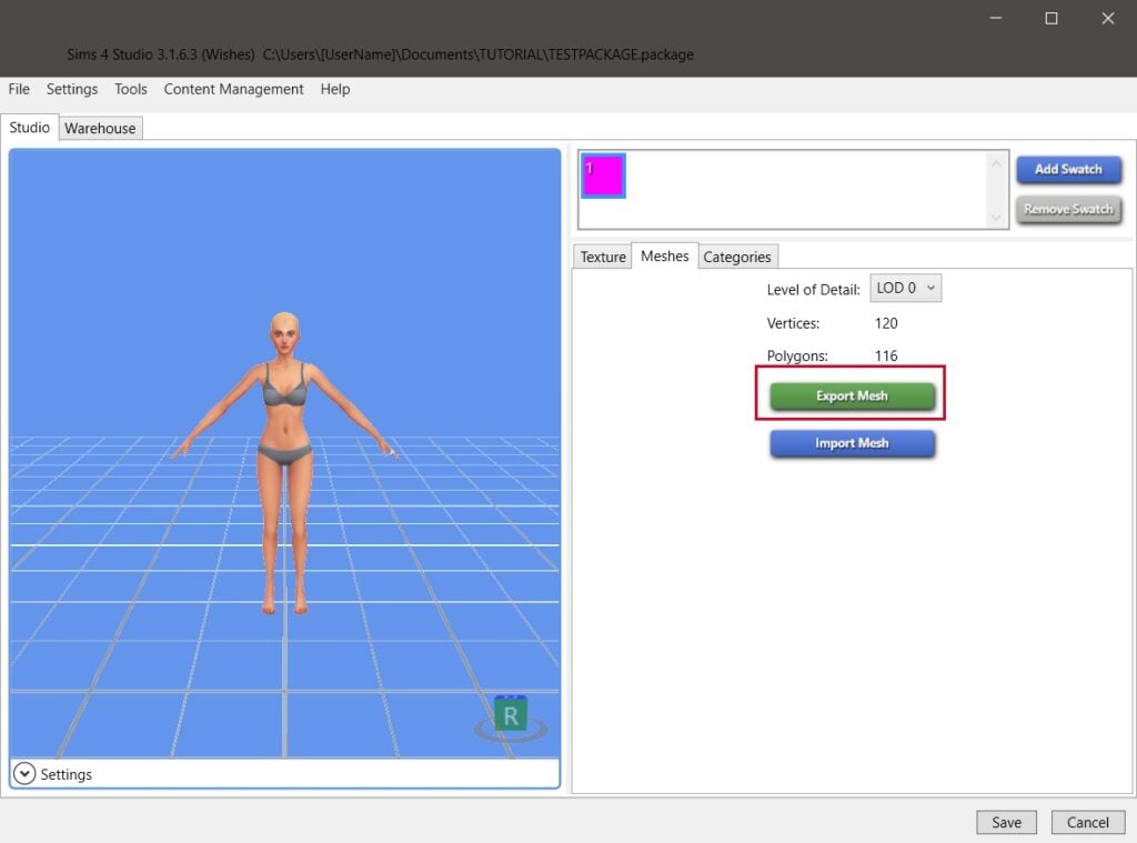 - 保存包文件,将其移至 Mods 文件夹并在 CAS 中进行测试。如果操作正确,您的配件应连接到模拟市民的手腕上并与模拟市民一起移动。